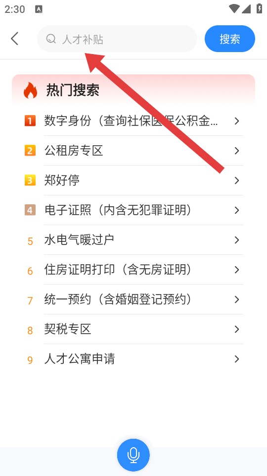 3、可以在搜索界面的输入框中,输入人才补贴关键词,借助平台搜索功能,快速查找相关政策及办理渠道。