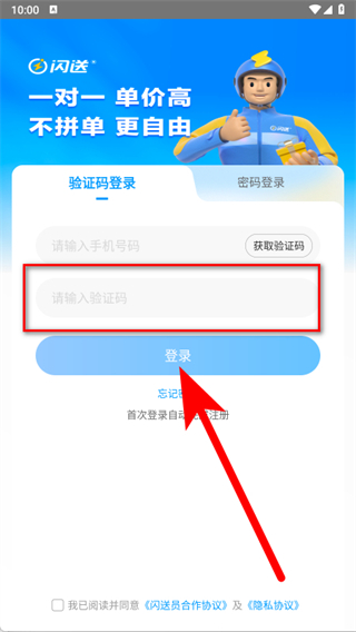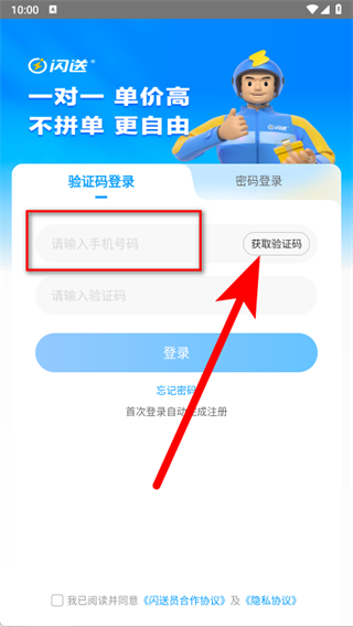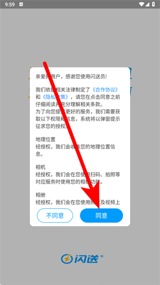 1、打开闪送员,在协议弹窗中点击同意,确认阅读并同意相关协议。
