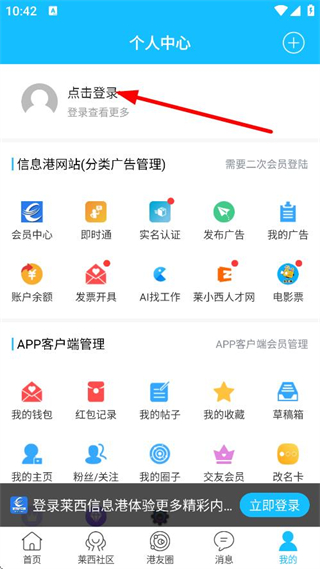 2、在个人中心页面,点击点击登录,进入登录方式选择页面。
