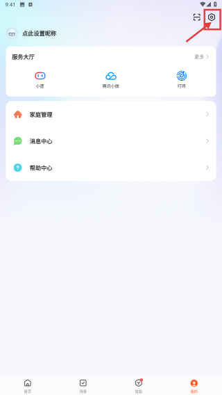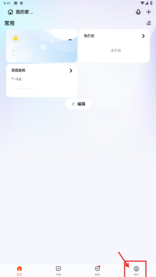 1、打开家庭类应用,点击底部我的选项,进入个人中心页面。
