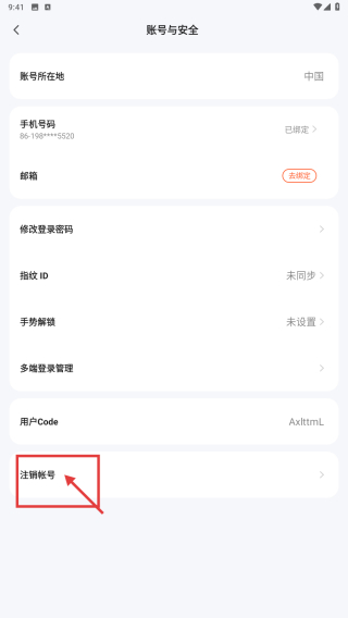 4、在账号安全页面,点击注销账号选项,提交账号注销申请。