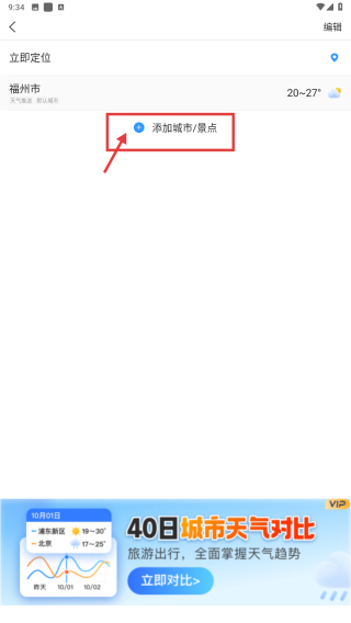 2、在城市管理页面,点击添加城市/景点选项,进入添加城市页面。