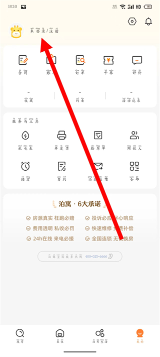 1、打开泊寓,点击底部导航栏我的,进入个人中心页面。
