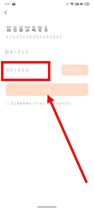 3、在短信验证码登录页面,输入手机号,点击获取验证码。