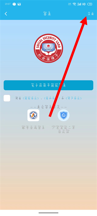3、在登录界面,点击右上角注册选项,进入注册页面。