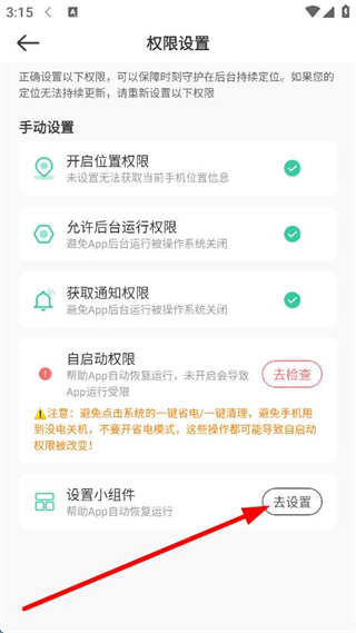 3、点击设置小组件后的去设置,进入设置小组件页面。
