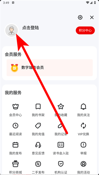 2、在个人中心页面,点击点击登陆区域,进入账号登录界面。