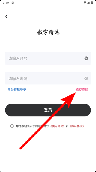 3、在登录界面,点击忘记密码选项,进入忘记密码页面。