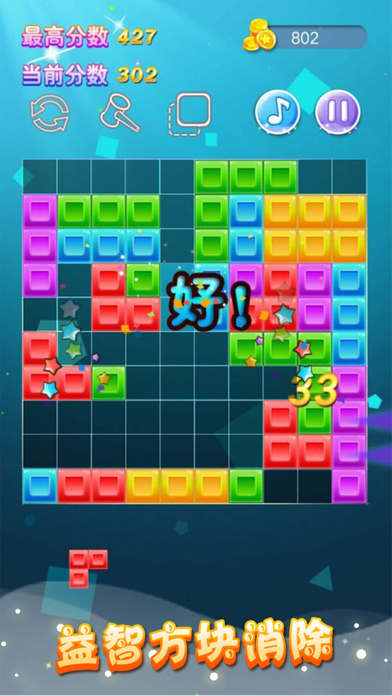 3、当棋盘空间被完全填满,再也无法放置任何方块组合时游戏结束,这种设计让每一局游戏都充满挑战性,玩家需要谨慎规划每一步操作。