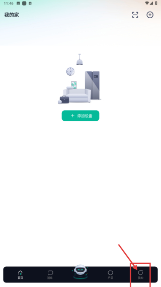 1、打开智能家居类应用,点击底部我的选项,进入个人中心页面。