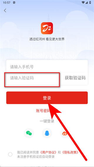 4、输入收到的验证码,勾选后,点击登录,完成注册登录。
