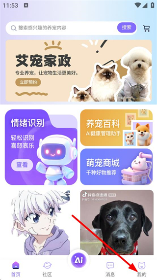 从AI沟通、社交互动到用品采购、专业咨询,覆盖养宠全场景需求,搭配积分激励体系提升参与感,无论是新手还是资深养宠人,都能获得全方位支持,让养宠更轻松。