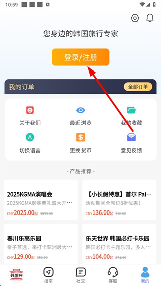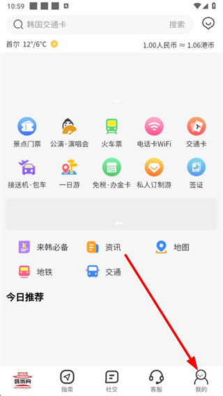 1、在韩游网app首页点击我的选项,进入个人页面。