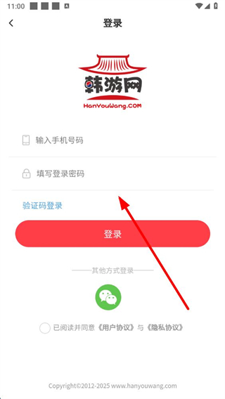4、在密码登录界面输入手机号码和登录密码,勾选同意协议后,点击登录按钮。