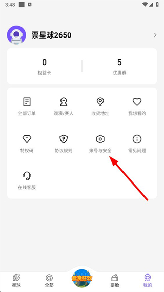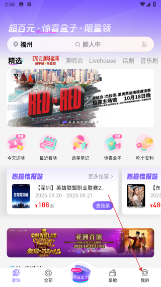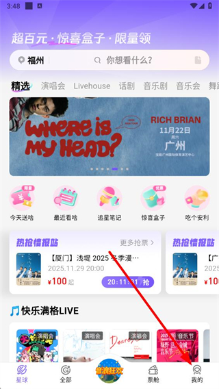 1、打开票星球APP,点击底部导航栏我的,进入个人页面。