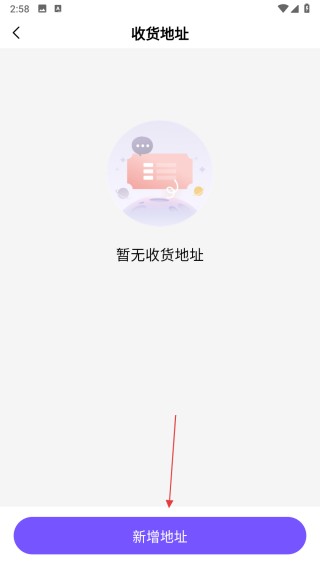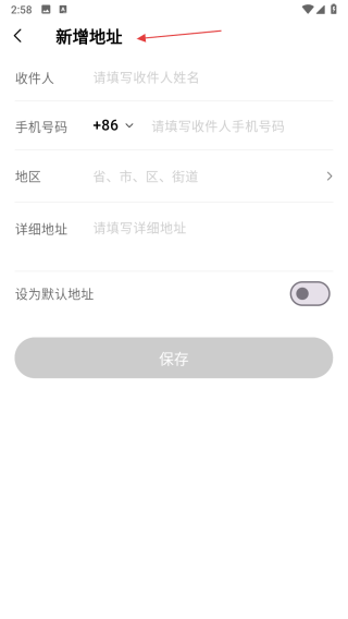 3、在收货地址管理页面,点击新增地址按钮,进入新增地址填写页面。