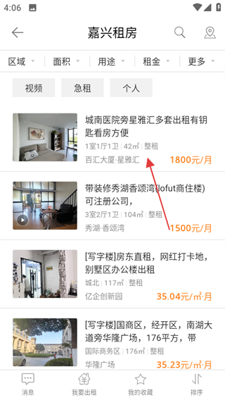 2、在租房列表页面,点击心仪的房源可进入房源详情页面。