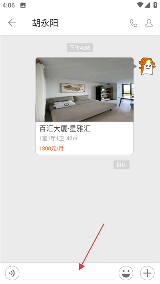 4、在聊天页面,可输入内容与房东沟通租房相关事宜。