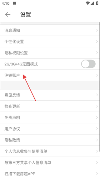 3、在设置页面,点击注销账户可进入注销账户说明页面。