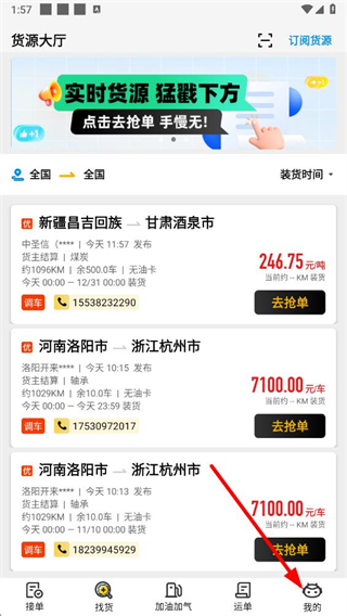 多种接单场景:首页接单、找货申请接单、扫二维码申请接单,全方位触达货源