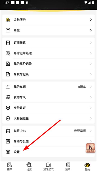1、在大易司机app货源大厅页面点击我的选项,进入个人页面。