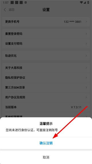 4、在温馨提示框中点击确认注销按钮,即可完成账号注销操作。