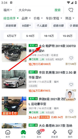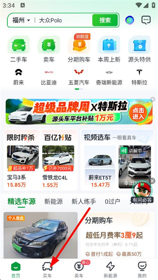 2、在买车页面,点击目标车辆,进入车辆详情页面。