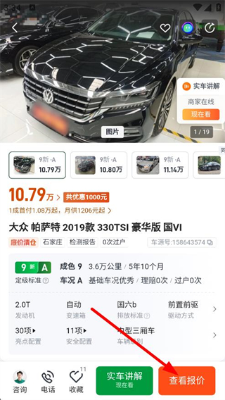 3、随后我们可以在车辆详情页面,点击查看报价,进入填写订单页面。