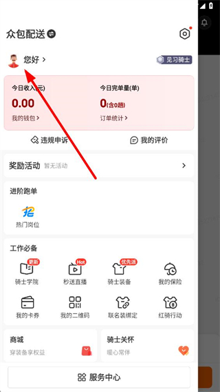 2、在功能列表中点击头像区域,进入个人中心页面。