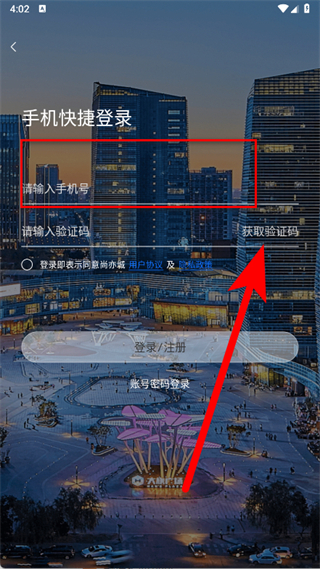 4、输入收到的短信验证码,勾选后,点击登录注册按钮,完成注册登录。