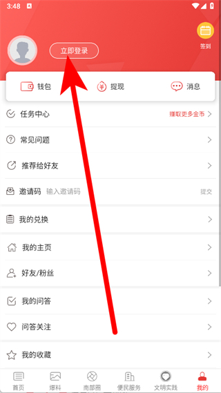 2、在个人中心页面,点击立即登录按钮,进入登录界面。
