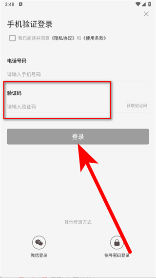 4、输入收到的短信验证码,勾选后,点击登录按钮,完成账号登录。