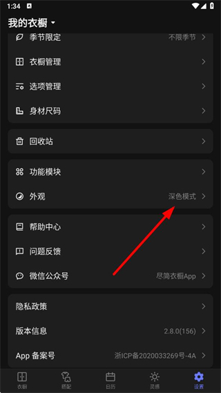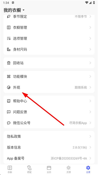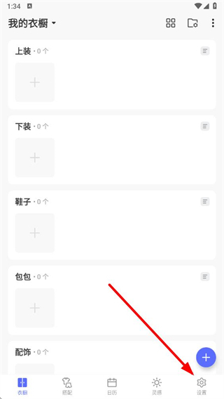 1、在尽简衣橱app衣橱页面点击设置选项,进入设置页面。