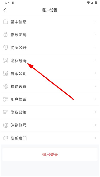 3、在账户设置页面点击隐私号码选项,进入隐私号码设置页面。
