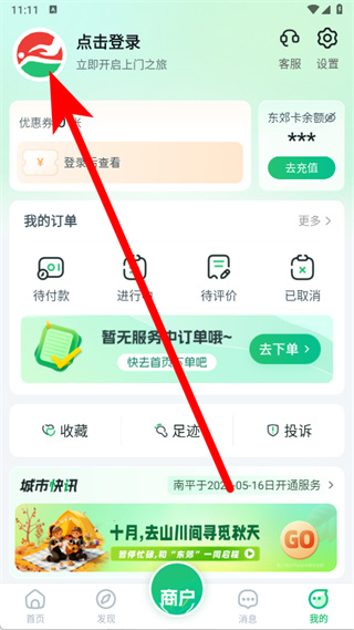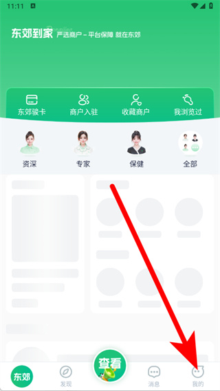 1、打开东郊到家,点击底部导航栏的我的,进入个人中心页面。