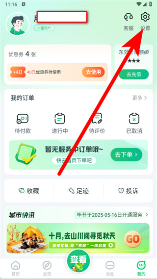 2、在个人中心页面,点击右上角设置,进入设置界面。