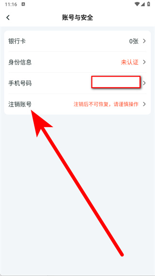 4、在账号与安全页面,点击注销账号,进入注销账号说明页面。