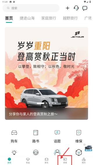 1、打开汽车服务类应用,点击底部商城选项,进入商城页面。