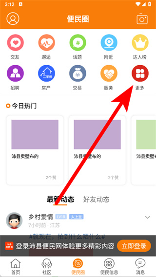 2、在便民圈页面,点击更多,进入服务分类页面。