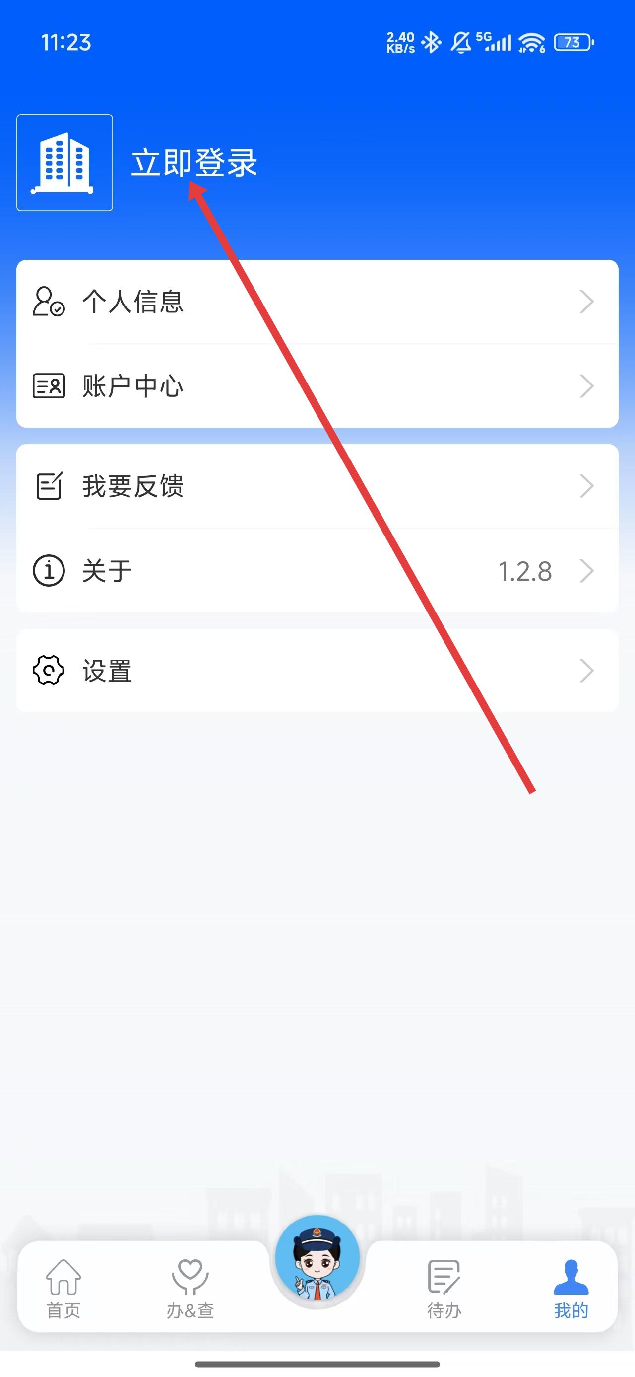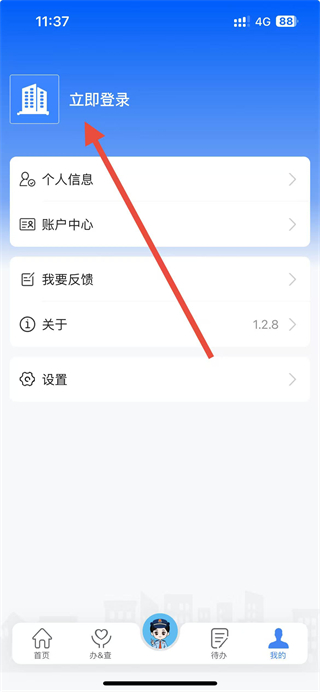 1、在电子税务局app我的页面点击立即登录选项,进入登录页面。