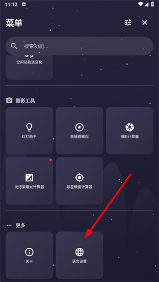 1、在天文通app观星页面点击天文工具选项,进入菜单页面。