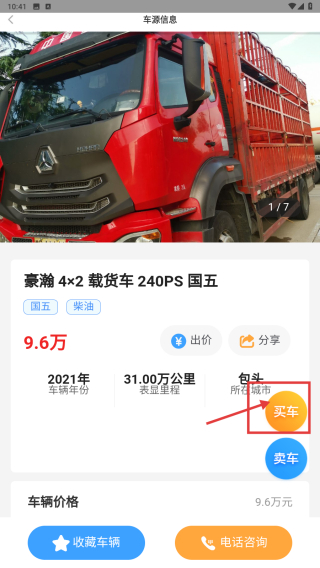4、在车辆信息页,点击买车按钮,发起该车辆的购买操作。