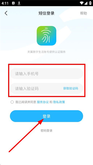 3、输入手机号,并输入验证码,点击登录,完成账号登录操作。
