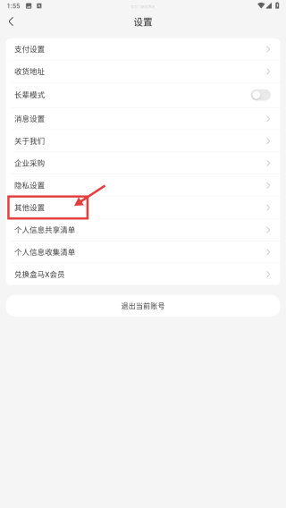 3、在设置页面,点击其他设置选项,进入其他设置页面。