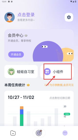 2、在功能页面,点击小组件选项,进入小组件页面。