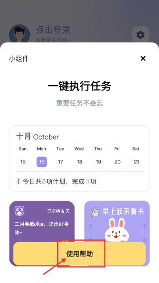 3、在小组件页面,点击使用帮助选项,查看如何添加到桌面的说明。