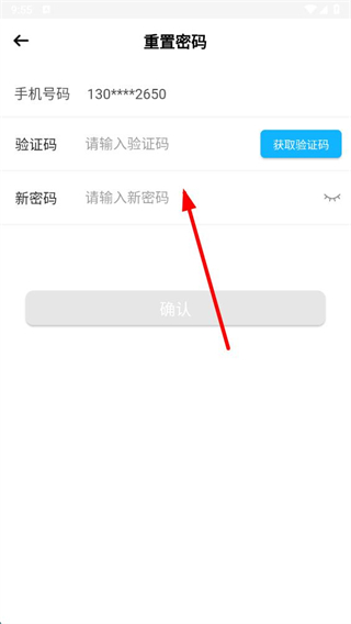 4、在重置密码页面输入验证码和新密码,点击确认按钮,即可完成登录密码重置操作。