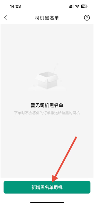 3、在司机黑名单页面,点击底部的新增黑名单司机按钮。
