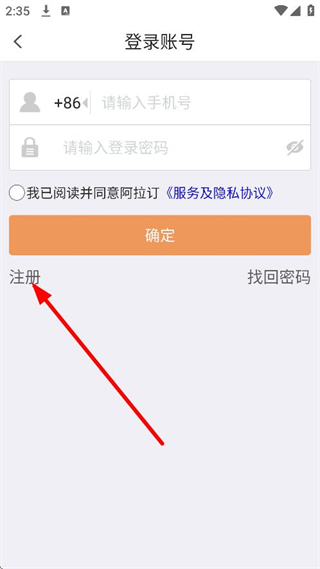 3、在登录账号页面,点击注册,进入注册账号页面。