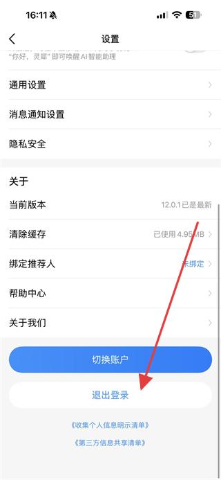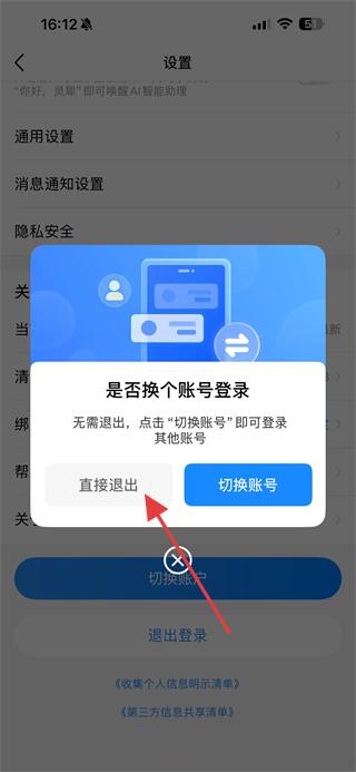 3、在设置界面中,点击退出登录选项,弹出确认框。